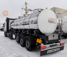 Цистерна имеет классическую круглую форму, обеспечивающую оптимальное распределение нагрузки и устойчивость. Внутренняя емкость разделена на 4 секции с продуманной разбивкой объема, что позволяет перевозить различные виды пищевых жидкостей или оптимизировать загрузку в зависимости от потребностей. Торосферические донышки внутренней емкости не только увеличивают прочность, но и облегчают процесс мойки.